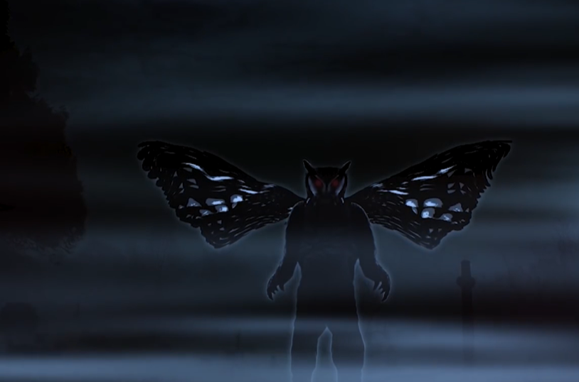 天蛾人根据人们对它的描述,它是一个由人和鸟组合而成的实体,翼展高达10英尺,大多数看过它的人都注意到,它的头上长着一双发着红光的眼睛,十分吓人,而它唯一的弱点就是怕光,也因此大多数见过这种生物的人,都是在晚上或从很远的地方看到的。